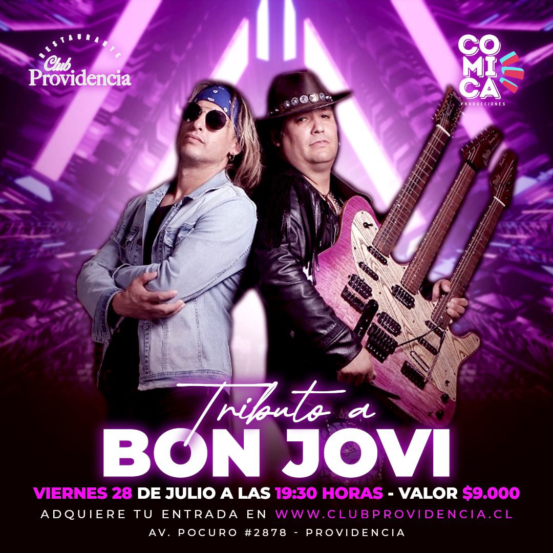 Llega a Club Providencia por segunda vez todo el power del Tributo a Bon Jovi (finalistas de la 5ta temporada del programa “Yo Soy”) con la mejor selección musical de sus 40 años de carrera con canciones como “Livin’ on a prayer”, “Como yo nadie te ha amado” y “Always”.