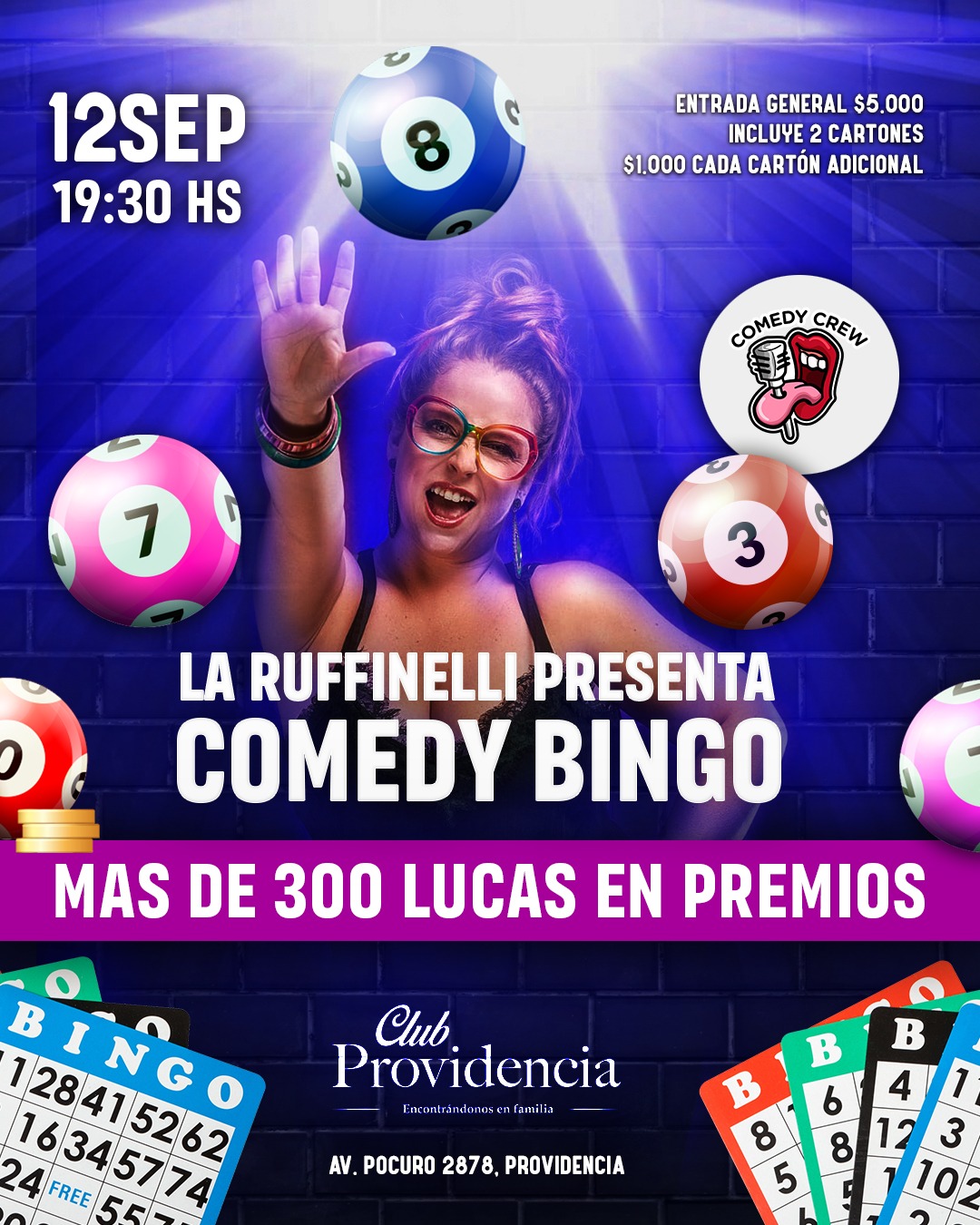 VIERNES 12 DE SEPTIEMBRE #COMEDYBINGO es un Bingo con Comedia!!! Más de $ 300.000.- en Premios! el viernes 12 de Septiembre comienza la maravillosa Magia del Bingo, junto a la...