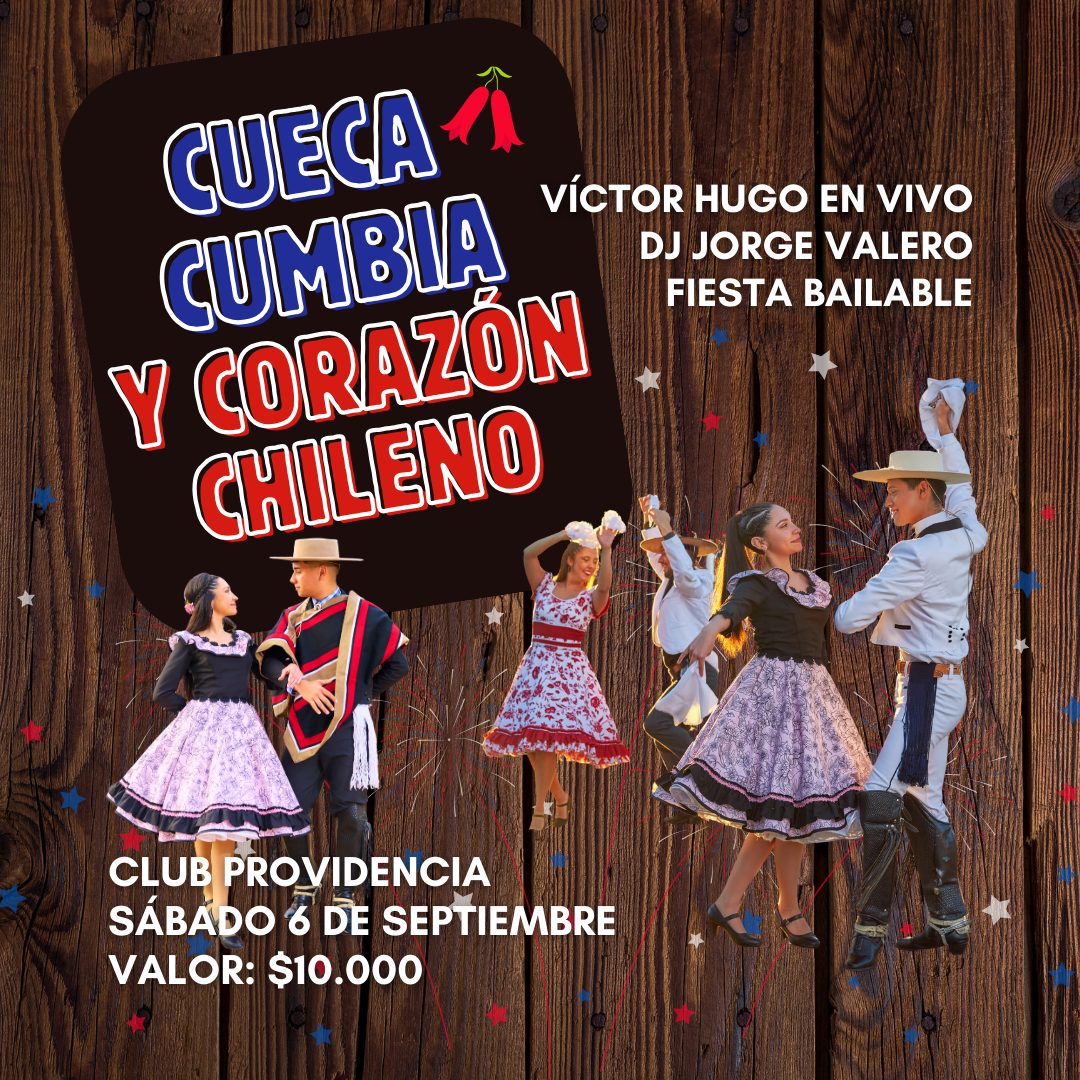 SÁBADO 6 DE SEPTIEMBRE ¡Vive la mezcla perfecta de tradición y ritmo!✨ Cueca, Cumbia y Corazón Chileno🎤 Víctor Hugo en vivo🎧 DJ Jorge Valero💃 ¡Fiesta bailable asegurada! Horario de 19:30...