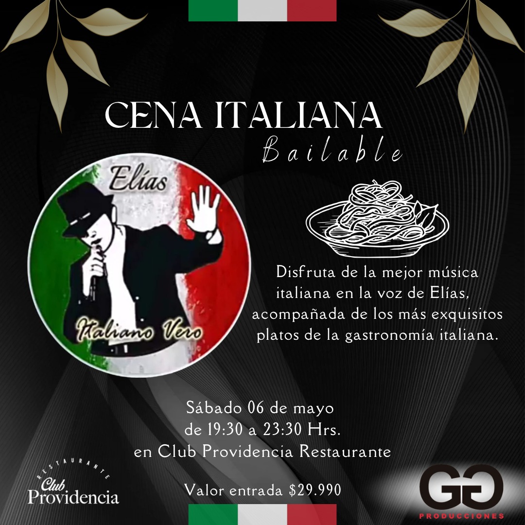 Sábado 06 de Mayo 19:30 hrs Ven a disfrutar de la mejor música italiana junto al "Italiano Vero" Elías, acompañada de los más exquisitos platos de la gastronomía italiana será...