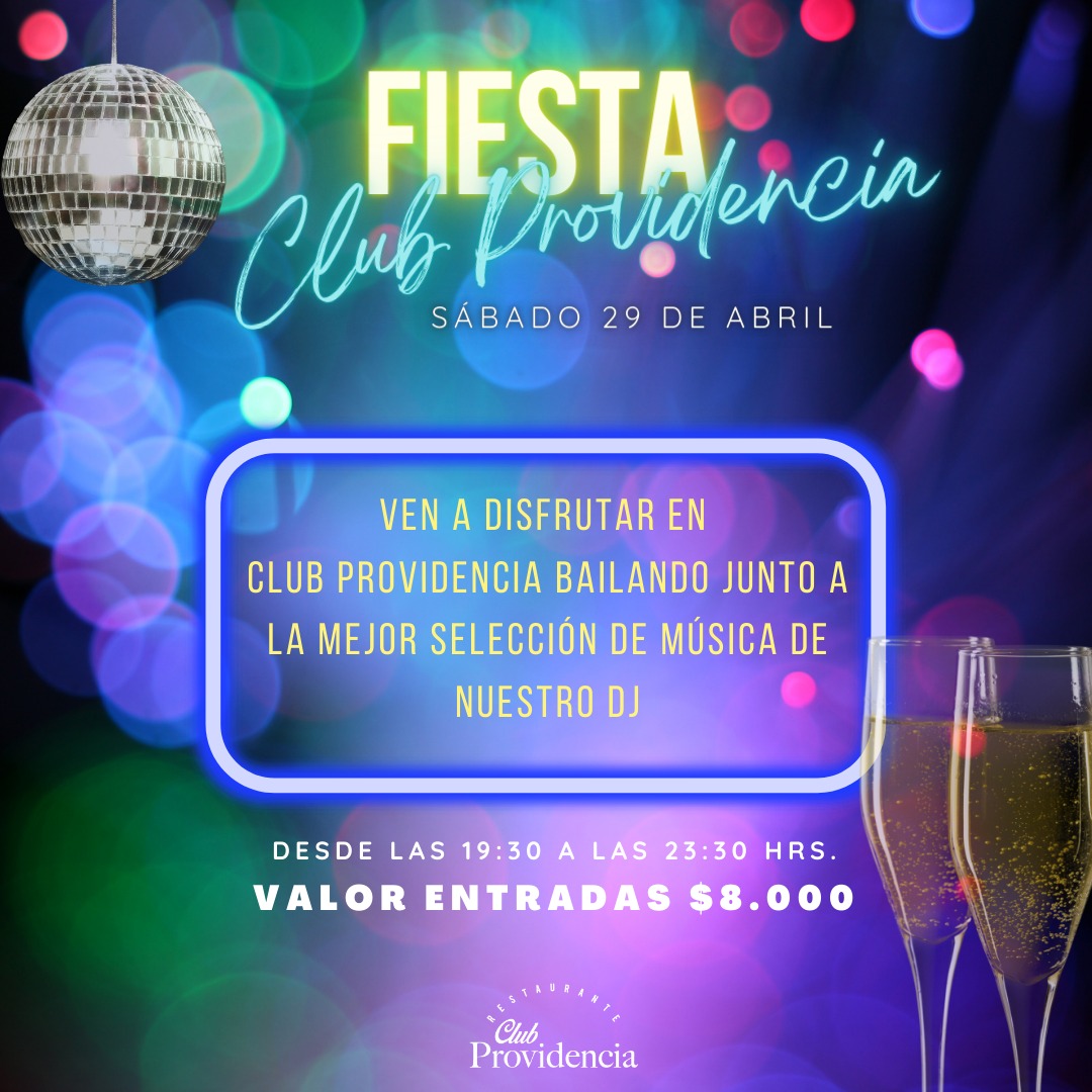 Sábado 29 de Abril ¡No te pierdas esta increíble fiesta! El sábado 29 de abril, desde las 19:30 Hrs. Club Providencia abre sus puertas para recibir a todos los amantes de la música. Esta...
