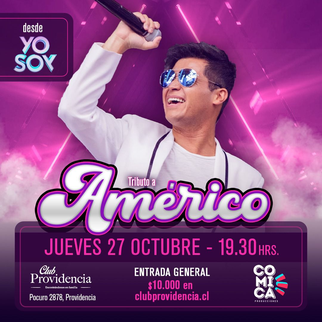 Jueves 27 DE OCTUBRE Cerramos el mes en grande junto al artista nacional Américo quién será el encargado de hacer vibrar a todo Club Providencia con lo mejor de su...