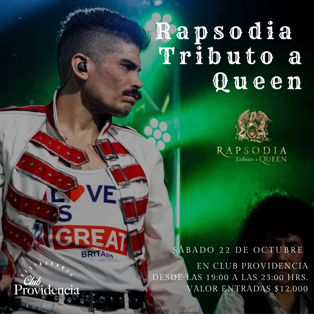 Sábado 22 de Octubre 19:00hrs Ven a disfrutar de una noche de éxitos al estilo Rapsodia tributo a Queen Nos hará cantar y bailar junto a sus mejores canciones! Una...