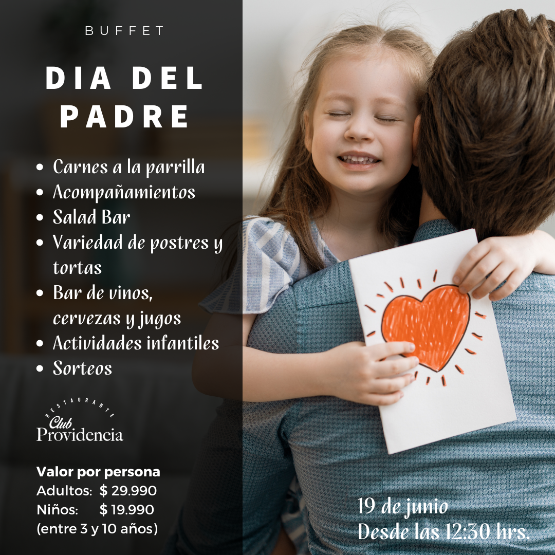 Disfruta del Buffet especial "Día del Padre" en Club Providencia Restaurante. Ven a celebrar el día del padre junto a tu familia y seres queridos a Club Providencia! Parrilla de...