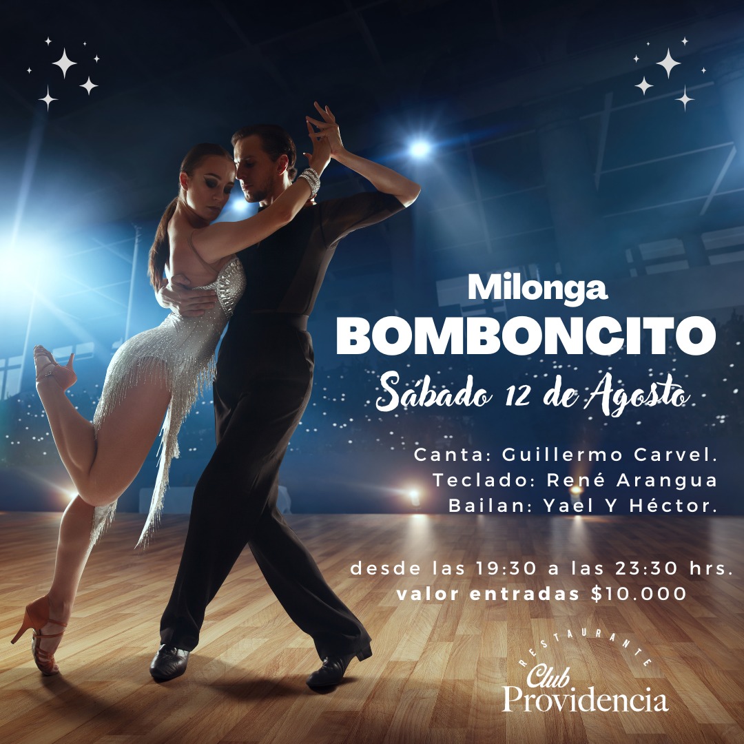 Sábado 12 de Agosto Milonga Bomboncito Descubre la Milonga Bomboncito, un evento que combina música en vivo con los tangos más populares. Sumérgete en la pista de baile y déjate...