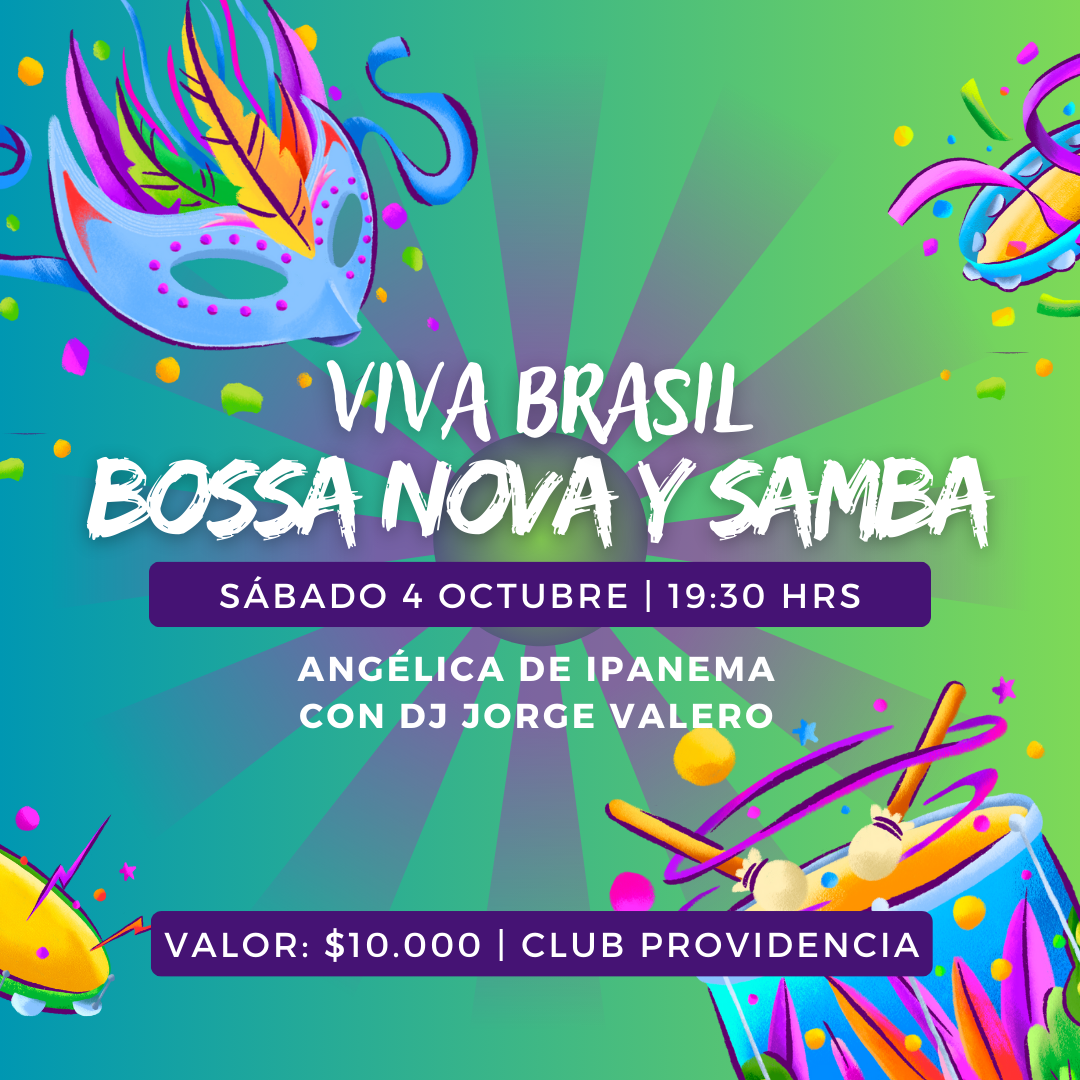 SÁBADO 4 DE OCTUBRE ¡Vive la magia de Brasil en una noche imperdible! 🇧🇷🎤 Angélica de Ipanema con lo mejor de la Bossa Nova & Samba🎧 DJ Jorge Valero prendiendo...